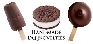 We are proud to produce our Novelties, by hand, on location. The quality is undeniable, and immediately noticeable upon your first bite! Don’t settle for mass produced Dilly Bars, Buster Bars and DQ Sandwiches, which leave you wanting. Get the real deal, made with care by our DQ Team members at your neighborhood DQ. Pick-up a six pack to share with your friends and family!